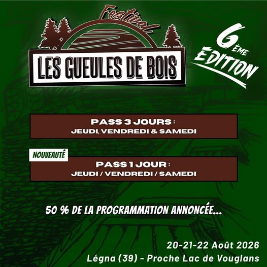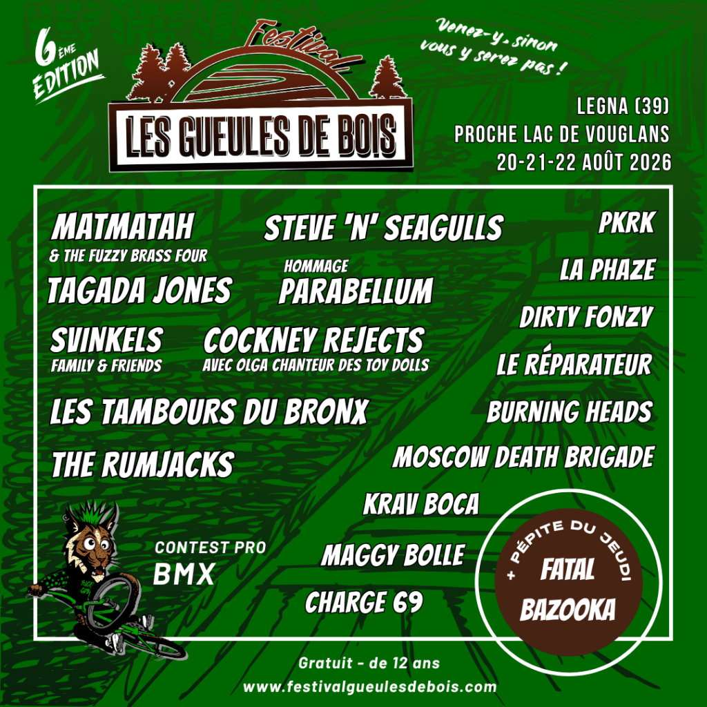 Le Festival Les Gueules de Bois se tiendra sur 3 jours avec un programme dans la continuité des précédentes éditions : Bois, Musique, BMX ! Une Aire de Bivouac gratuite sera disponible sur place mais il vous faudra prendre votre réservation.