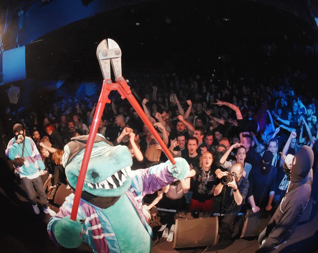 MOSCOW DEATH BRIGADE (MDB) fusionne techno, rap et punk hardcore dans un cocktail explosif nourri par la culture graffiti et l’underground DIY. Né des mouvements sociaux progressistes, le collectif défend un message clair contre la guerre, le racisme et toutes les formes de discrimination. Connu pour son son agressif, son flow percutant et ses shows spectaculaires — avec décors évolutifs et mascotte crocodile — le groupe se produit masqué, en survêtements et cagoules, cultivant une identité visuelle forte.